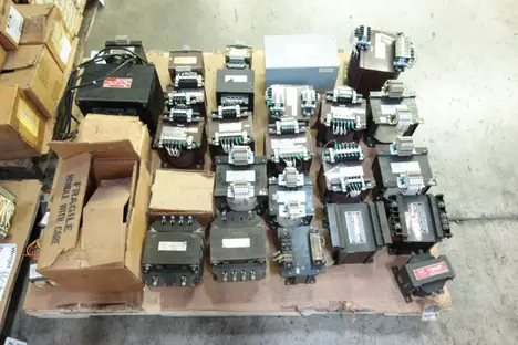 3 PALLETS OF ASSORTED TRANSFORMERS, EATON, FUJI, BBR, NUNOME, GE, CENTER, SIEMENS, HONEYWELL, POWERTRAN, GOULDS, JACKSON, PHILIPS
