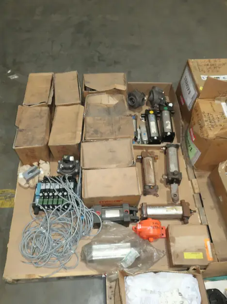 3 PALLETS OF ASSORTED VALVE AND REPLACEMENT PARTS, FISHER, HOSES, FITTINGS, SEALS, RINGS, CYLINDERS, DIAPHRAGMS, MILWAUKEE, MECAIR, BS&S, ASCO, NUMATICS