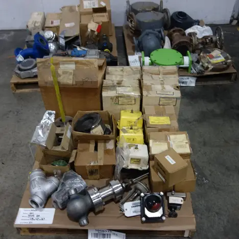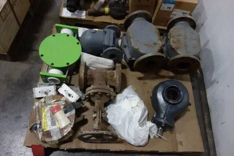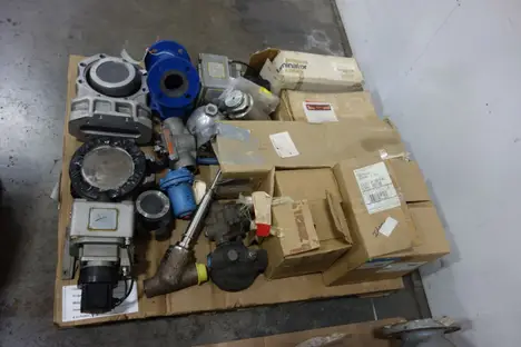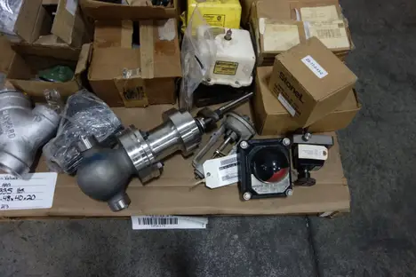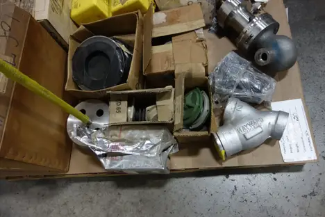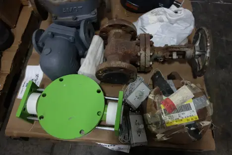 3 PALLETS OF ASSORTED VALVES, VALVE PARTS AND ACCESSORIES - STEAM TRAP, ATE VALVE, VALVE DISCS, VALVE ACTUATORS, POSITION INDICATOR, SOLENOID VALVE - FISHER , FLOWSERVE, HONEYWELL , PORTERSVILLE , SPIRAX SARCO