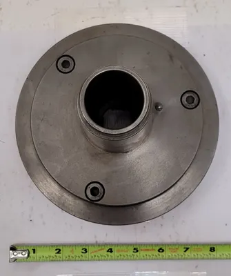 THE 4 JAW LATHE CHUCK IS A PRECISION TOOLING ACCESSORY DESIGNED FOR USE IN MACHINING APPLICATIONS. IT FEATURES A ROBUST 7-3/4 INCH OVERALL DIAMETER, PROVIDING A STABLE AND SECURE PLATFORM FOR WORKPIECE CLAMPING. THE CHUCK IS EQUIPPED WITH FOUR JAWS, ALLOWING FOR VERSATILE AND ADJUSTABLE GRIPPING OF IRREGULARLY SHAPED OBJECTS, ENHANCING ITS UTILITY IN VARIOUS MACHINING TASKS. THE THROUGH HOLE MEASURES 1-1/4 INCHES, FACILITATING THE ACCOMMODATION OF LONGER WORKPIECES AND ENABLING OPERATIONS THAT REQUIRE MATERIAL TO PASS THROUGH THE CHUCK. THIS LATHE CHUCK IS SUITABLE FOR EXPERIENCED OPERATORS SEEKING TO OPTIMIZE THEIR MACHINING SETUP WITH RELIABLE AND ADAPTABLE EQUIPMENT. NOTE THAT JAWS ARE NOT INCLUDED WITH THIS UNIT.