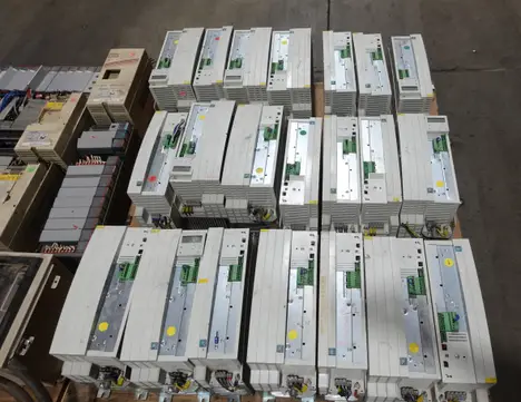 4 PALLETS OF ASSORTED AUTOMATION AND CONTROLS, LENZE, SIEMENS, FOXBORO, SAFETRONICS, BALDOR, SCHNEIDER