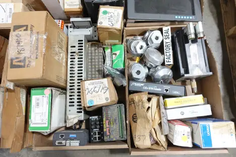 4 PALLETS OF ASSORTED AUTOMATION AND ELECTRICAL CONTROLS, SERVOS, MODULES, PCB BOARDS, INTERFACE PANELS, SWITCHES