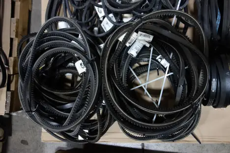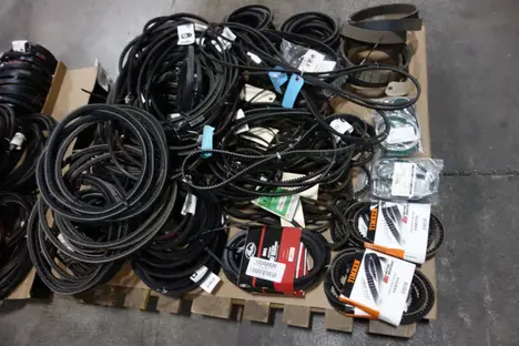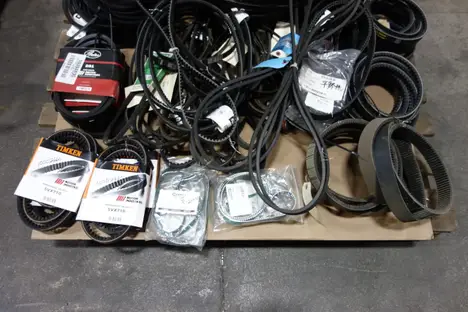 4 PALLETS OF ASSORTED BELTS - TIMING BELTS, V-BELT, HIGH POWER;HEAVY DUTY;64 IN IC;1 VBELT- GATES, CONTINENTAL, DAYCO, TINKEN