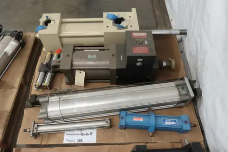 4 PALLETS OF ASSORTED CYLINDERS, HYDRAULIC, PNEUMATIC