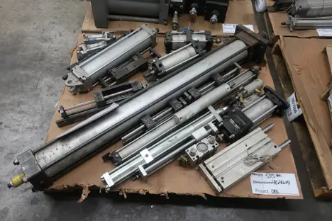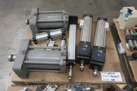 4 PALLETS OF ASSORTED CYLINDERS, HYDRAULIC, PNEUMATIC; SMC, HORIUCHI, VICKERS, CKD, PNUE, SANTEST, PARKER, NACHI, UNITED CONVEYOR, PHD, DURATHERM
