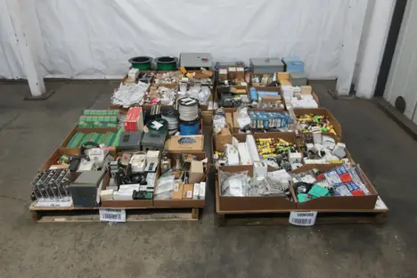 4 PALLETS OF ASSORTED ELECTRICAL COMPONENTS AND HARDWARE