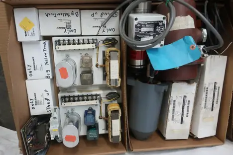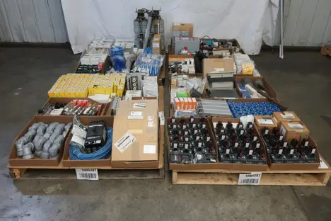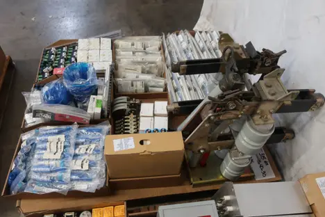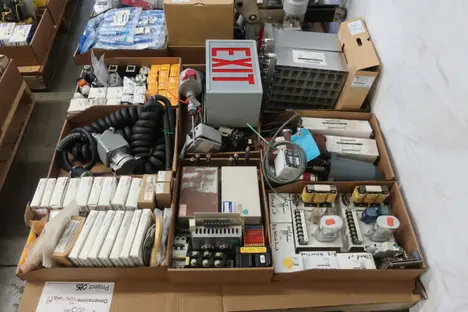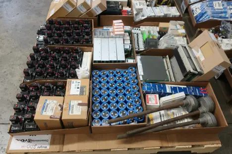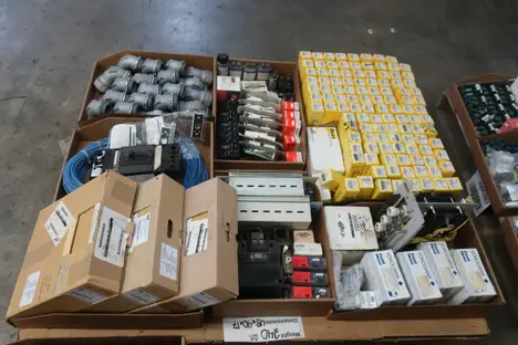 4 PALLETS OF ASSORTED ELECTRICAL COMPONENTS, PLUGS AND CONNECTORS, CONTACTORS, FUSES AND FUSE BREAKERS, CIRCUIT BREAKERS, RELAYS, GAUGES, CONTROLLERS, MODULES; THOMAS&BETTS, PHILLIPS, MOELLER, MAGNETROL, KRAUS NAIMER, BUSSMAN, OHMITE, PARSONS, WIELAND, SIEMENS, ALLEN BRADLEY, YOKOGAWA, BURNDY