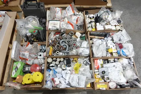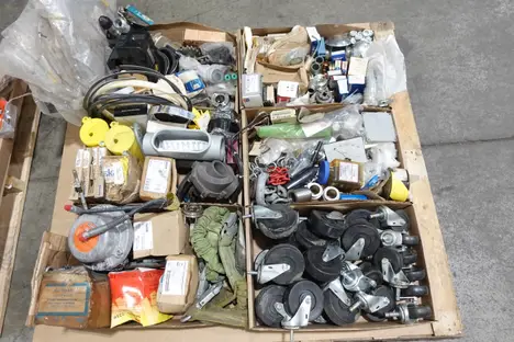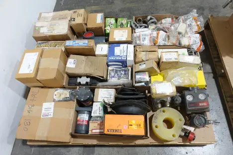 4 PALLETS OF ASSORTED MIXED MRO, ASSORTED ELECTRICAL, CASTERS, VALVE PARTS, HARDWARE, INSTRUMENTATION, BEARINGS, FILTERS, SEAL KITS, ASSORTED POWER TRANSMISSION PARTS