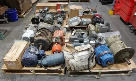 4 PALLETS OF ASSORTED MOTORS, BALDOR, LENZE, WEG, SEW-EURODRIVE, TOSHIBA, MARATHON, GE