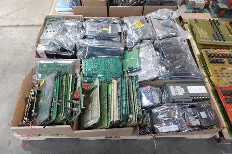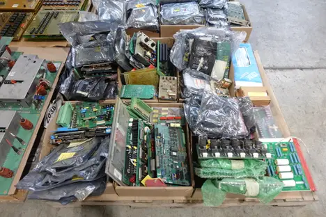 4 PALLETS OF ASSORTED PCB CIRCUIT BOARDS AND MODULES; HONEYWELL, BAILEY, IBM, SCHENCK PROCESS, GE, ALLEN BRADLEY