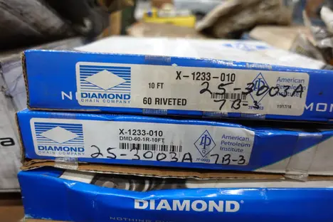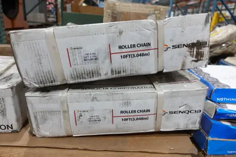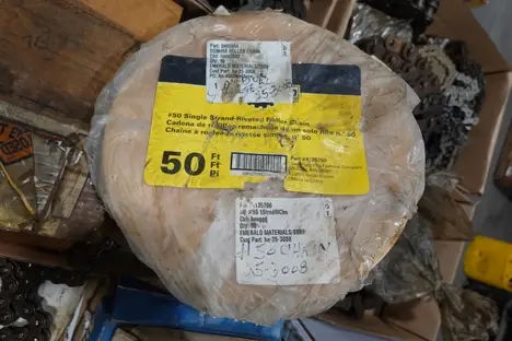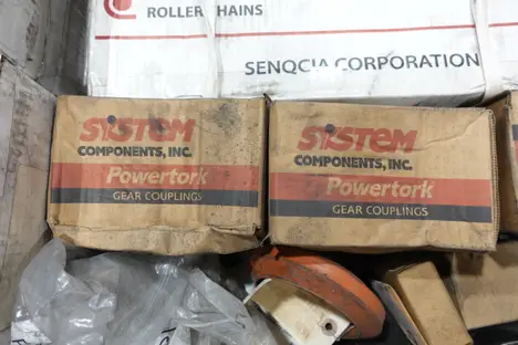 4 PALLETS OF ASSORTED POWER TRANSMISSION REPLACEMENT PARTS, ROLLER CHAIN, SPROCKETS, HUBS, COUPLERS, BEARING PARTS