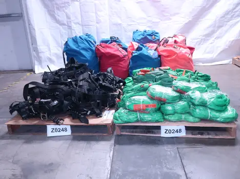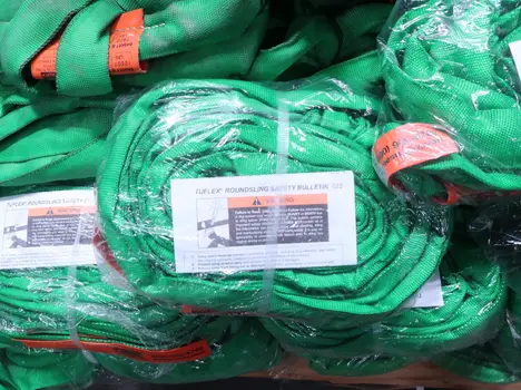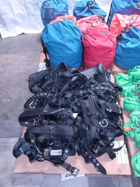 4 PALLETS OF ASSORTED RIGGING, ROPE, HARNESSES, ROUNDSLING, TUFLEX, PMI, WESTFALL PRO, ELK RIVER
