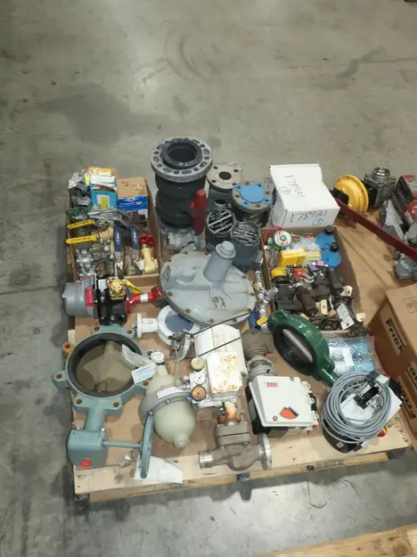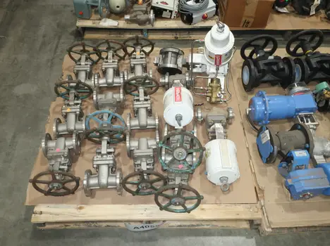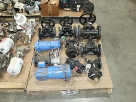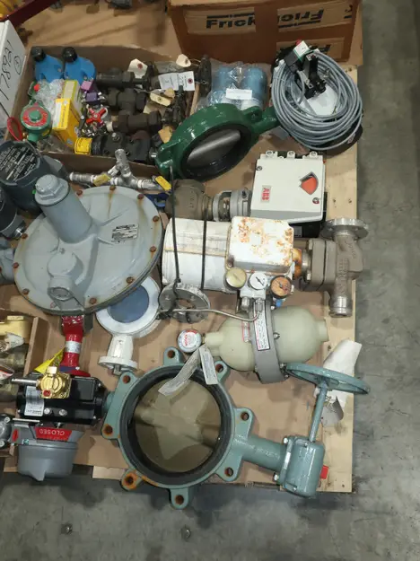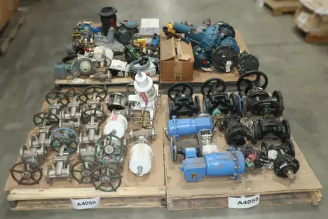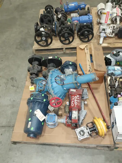 4 PALLETS OF ASSORTED VALVES, BALL VALVES, PNEUMATIC VALVES, BUTTERFLY VALVES, SOLENOID VALVES, STEM TRAPS, FLOWSERVE, ARMSTRONG, VELAN, JAMESBURY, GIE INC., MASONEILAN, FRICK, FISHER, ABB, ASCO
