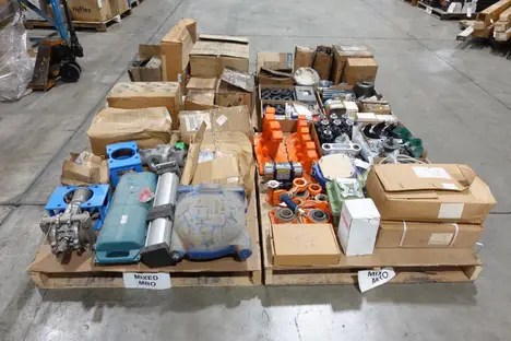 4 PALLETS OF MIXED MRO, VALVES AND VALVE PARTS, VIBRATORS, CONVEYOR PARTS, PNEUMATICS, FILTERS