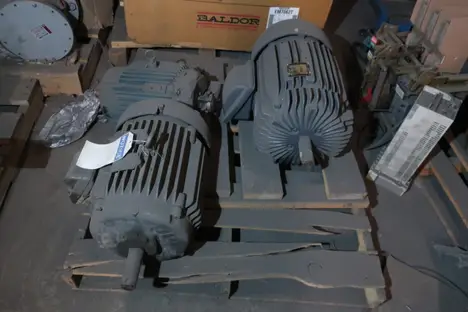 6 PALLETS OF ASSORTED AC-MOTORS, 460V-AC, BALDOR, RELIANCE