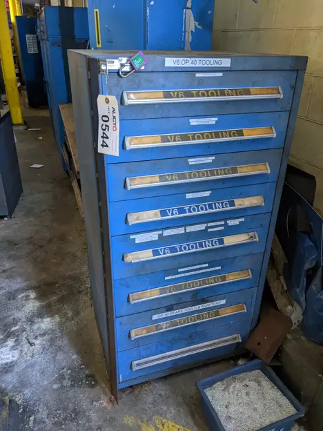8 DRAWER STANLEY VIDMAR TOOL CABINET WITH CONTENTS, ASSORTED V6 TOOLING TAPE
