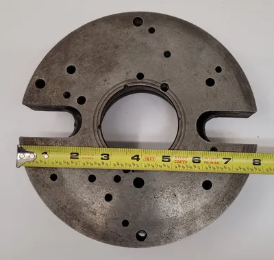 THE 8" FACE PLATE WITH L-0 MOUNT IS A PRECISION TOOLING COMPONENT DESIGNED FOR VERSATILE APPLICATIONS. IT FEATURES AN OVERALL DIAMETER OF 8 INCHES, PROVIDING A SUBSTANTIAL SURFACE AREA FOR VARIOUS MACHINING TASKS. THE FACE PLATE IS EQUIPPED WITH A CENTER HOLE THAT HAS AN OUTER DIAMETER OF 4.5 INCHES, ALLOWING FOR SECURE MOUNTING AND ALIGNMENT. ADDITIONALLY, IT INCLUDES DUAL CENTER HOLE INNER DIAMETERS, WITH THE FRONT SIDE MEASURING 3.25 INCHES AND THE BACKSIDE MEASURING 2.5 INCHES, OFFERING FLEXIBILITY FOR DIFFERENT TOOLING SETUPS. THE L-0 MOUNT ENSURES COMPATIBILITY WITH A RANGE OF MACHINE TOOLS, MAKING IT A RELIABLE CHOICE FOR DIVERSE INDUSTRIAL APPLICATIONS.