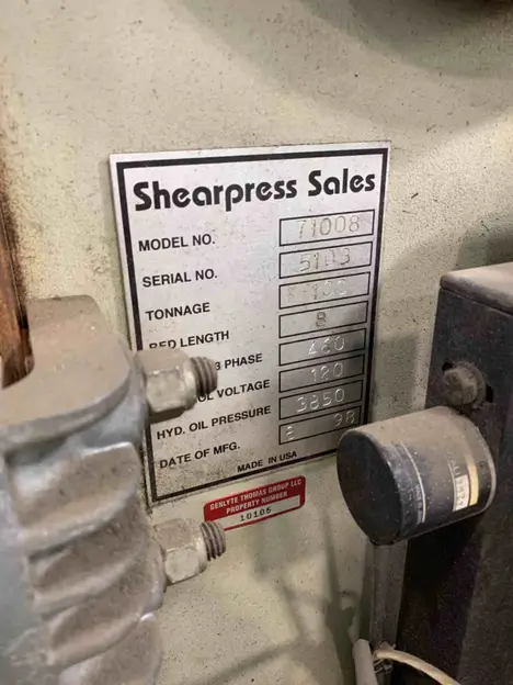 Accurpress 71008 Hydraulic CNC Press Brake 100 Ton 8Ft Bed 460V-AC 3PH 120V-AC Control