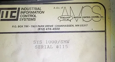 THIS IS AN ACROLOOP SYS 1000/SMW MOTION CONTROL SYSTEM HOUSED WITHIN A HOFFMAN ENGINEERING PANEL ENCLOSURE. THE ENCLOSURE, IDENTIFIED BY PART NUMBER N-176955, FEATURES DIMENSIONS OF 24 INCHES BY 24 INCHES BY 12 INCHES. THE SYSTEM, MANUFACTURED BY ACROLOOP MOTION CONTROL SYSTEMS, IS THE SYS 1000/SMW MODEL.