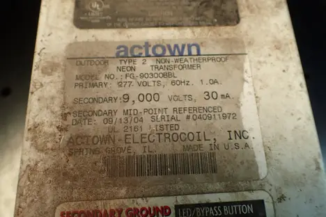 Actown FG-90300CAB Neon Transformer 277V Primary 9KV 9000V 30mA Secondary
