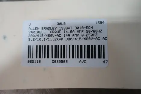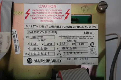 ALLEN BRADLEY 1336VT-B010-EON 14.6A AMP 50/60HZ 380/415/460V-AC 14A AMP 0-250HZ 10HP 380/415/460V-AC AC MOTOR DRIVE