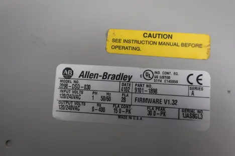 ALLEN BRADLEY 2098-DSD-030 ULTRA3000 120/240V-AC 120/240V-AC 1PH 3KW SERVO DRIVES AND AMPLIFIER