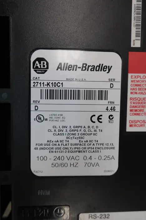 NEW ALLEN BRADLEY 2711-K10C1 PANELVIEW 1000 100-240V-AC 70VA REV D SER D OPERATOR INTERFACE PANEL CONTROLS