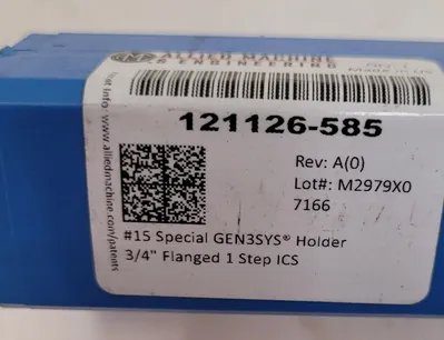 THIS IS AN ALLIED MACHINE & ENGINEERING 121126-585 SPECIAL HOLDER, ALSO IDENTIFIED AS A #15 SPECIAL GEN3SYS HOLDER. IT FEATURES A 3/4 INCH FLANGED 1-STEP ICS SHANK AND A STRAIGHT 3/4 INCH SHANK. THE TOOL HAS AN OVERALL LENGTH (OAL) OF 9-1/2 INCHES, WITH 2 FLUTES AND A 5-1/2 INCH FLUTE LENGTH.