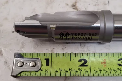 THIS IS AN ALLIED MACHINE & ENGINEERING 110927-562 INDEXABLE INSERT DRILL. THE UNIT HAS AN OVERALL LENGTH OF 4.67 INCHES AND A SHANK DIAMETER OF 0.75 INCHES. THE SHANK LENGTH IS 2 INCHES. IT FEATURES TWO FLUTES WITH A FLUTE LENGTH OF 2.67 INCHES AND A FLUTE DIAMETER END OF 20MM.