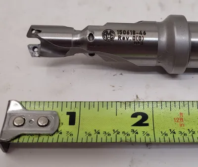 THIS ALLIED MACHINE & ENGINEERING AMEC 150618-46 IS AN INDEXABLE INSERT DRILL FEATURING A 13MM GEN3 ICS HOLDER. THE TOOL HAS AN OVERALL LENGTH (OAL) OF 4-3/8 INCHES AND A SHANK LENGTH OF 1-7/8 INCHES. THE SHANK DIAMETER IS 3/4 INCH, AND THE DRILL END DIAMETER WITHOUT THE INSERT IS 1/2 INCH. IT IS DESIGNED WITH 2 FLUTES, WITH A FLUTE LENGTH OF 1-3/4 INCHES.