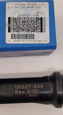 THE AMEC 130627-544 SPECIAL SPADE DRILL HOLDER BY ALLIED MACHINE & ENGINEERING IS A 2-FLUTE HOLDER DESIGNED FOR EFFICIENT DRILLING. THE HOLDER HAS AN OVERALL LENGTH (OAL) OF 6.75” AND FEATURES A SHANK LENGTH OF 2.25” WITH A SHANK DIAMETER OF 1.25”. IT IS IDENTIFIED AS A 2.5 TAH 114.AAMM, TSC TYPE. THE DRILL END DIAMETER IS 1.25", AND IT IS 4” LONG.