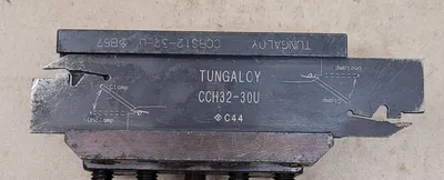 THE ALORIS CXA 1 LATHE TOOL POST HOLDER IS DESIGNED FOR LATHES WITH A SWING OF 13 TO 18 INCHES. KEY DIMENSIONS INCLUDE AN OVERALL HEIGHT OF 2-1/8 INCHES AND AN OVERALL LENGTH OF 3-1/2 INCHES. IT ACCOMMODATES A MAXIMUM CUTTING TOOL SIZE OF 3/4 INCH, WITH A CENTERLINE HEIGHT OF 1-7/16 INCHES AND A TOOL BIT RANGE OF 1/4 TO 3/4 INCH. THE HOLDER UTILIZES A 2-1/4 INCH WEDGE AND DOES NOT FEATURE THROUGH COOLANT. INCLUDED COMPONENTS ARE A TUNGALOY CCB812-32-U BLADE HOLDER AND A TUNGALOY CCH32-30U BLADE. THE BLADE FEATURES A SHANK HEIGHT OF 1.26 INCHES AND A SHANK WIDTH OF 0.087 INCHES, WITH A NEUTRAL CUTTING DIRECTION. ITS OVERALL LENGTH (OAL) IS 5.906 INCHES, AND THE MAXIMUM CUTTING DEPTH (CDX) IS 1.969 INCHES. THE BLADE HAS AN INSERT SEAT SIZE CODE (SSC) OF 30, AN OVERALL HEIGHT (OAH) OF 0.969 INCHES, AND A FUNCTIONAL WIDTH (WF) OF 0.118 INCHES. IT SUPPORTS A MAXIMUM WORK PIECE PARTING DIAMETER OF 3.94 INCHES, WITH ALL MEASUREMENTS PROVIDED IN INCHES.