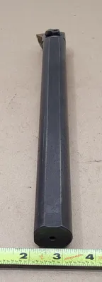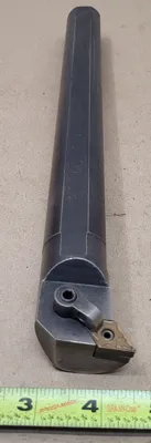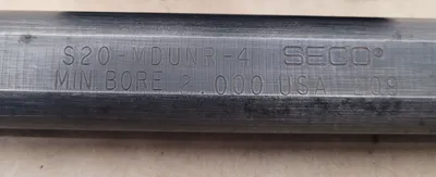 THE ITEM INCLUDES AN ALORIS CXA 41 BORING BAR TOOL HOLDER WITH A 1-1/4" BORE AND DIMENSIONS OF A: 1-1/8“, B: 2-1/4“, D: 1-1/4“, AND D1: 1″. IT COMES WITH A SECO S20-MDUNR-4 BORING BAR, WHICH IS A RIGHT-HAND HOLDER WITH A MINIMUM BORE OF 2.000” AND A 1-1/4 INCH SHANK DIAMETER. THE OVERALL LENGTH IS 14.0000 DECIMAL INCHES. IT USES A PIN & CLAMP METHOD FOR INSERT HOLDING, COMPATIBLE WITH INSERT SIZE CODE 432 AND A DIAMOND SHAPE. THE TOOL HAS A NEGATIVE RAKE, A RAKE ANGLE OF -7.00, AND A LEAD ANGLE OF 3. THE INSERT INSCRIBED CIRCLE IS 1/2 INCH (0.5000 DECIMAL INCHES OR 12.70 MM). THE CENTER TO CUTTING EDGE IS 1.0000 DECIMAL INCHES, AND THE INSERT THICKNESS IS 0.1875 DECIMAL INCHES (3/16 INCH). THE TOOL IS NOT COOLANT THROUGH AND IS NOT A MULTI-USE TOOL.