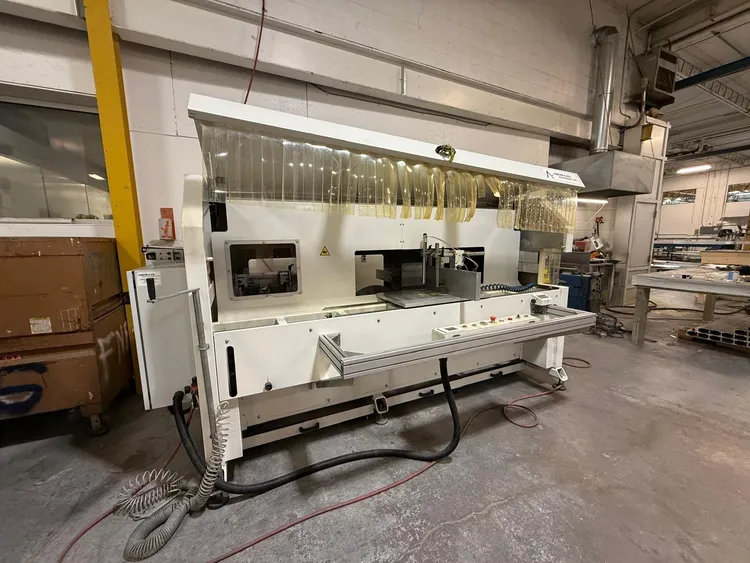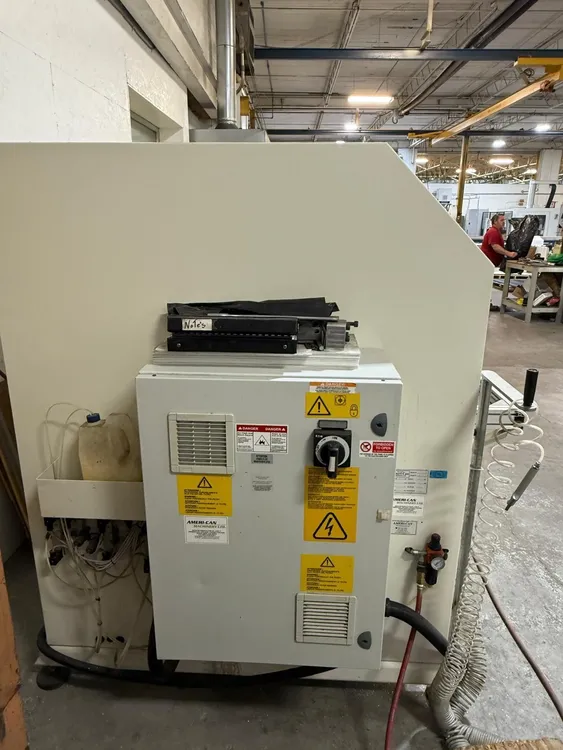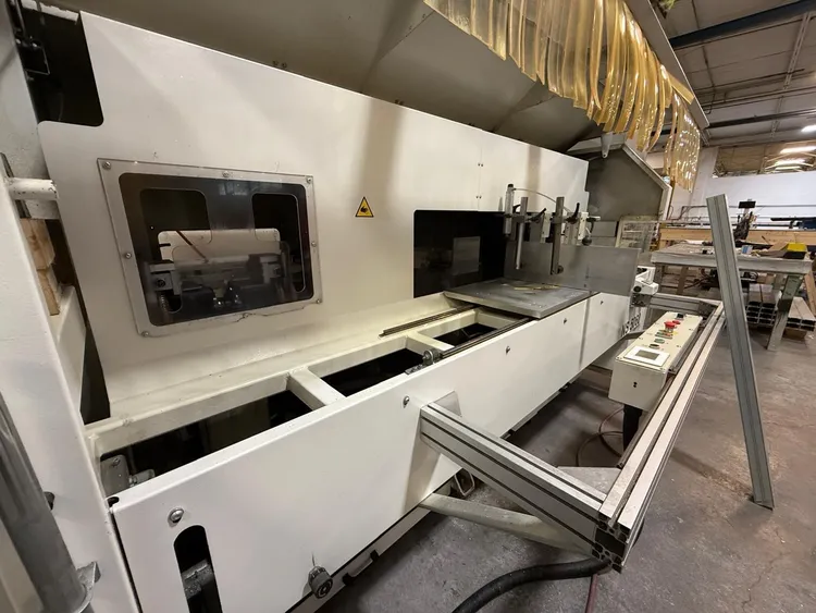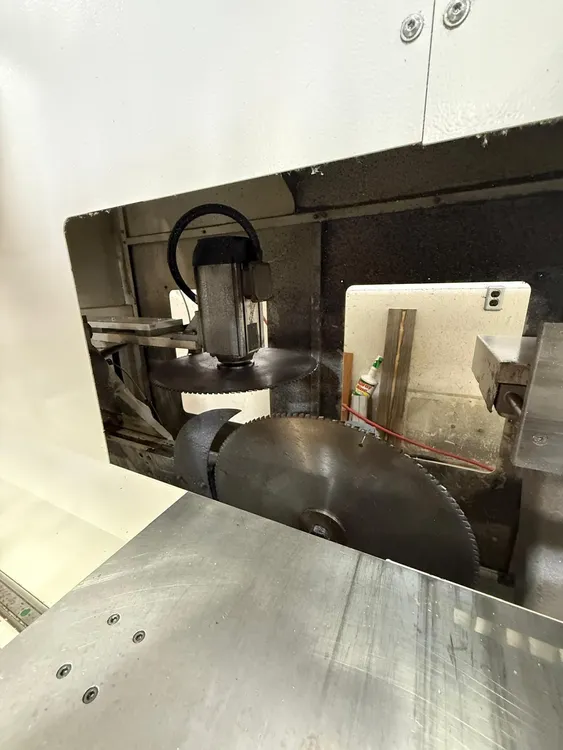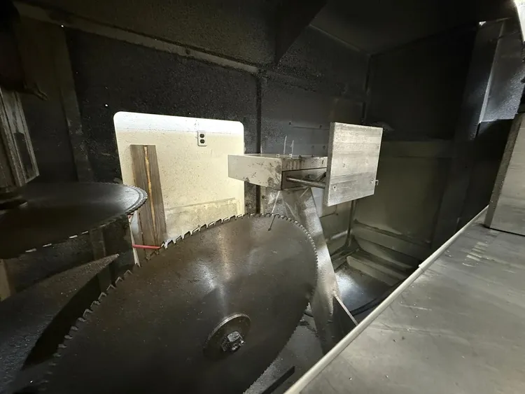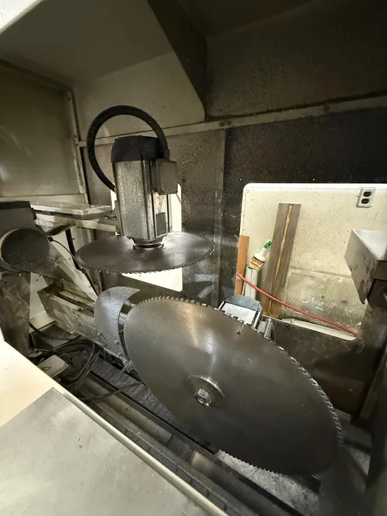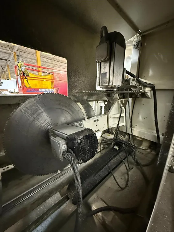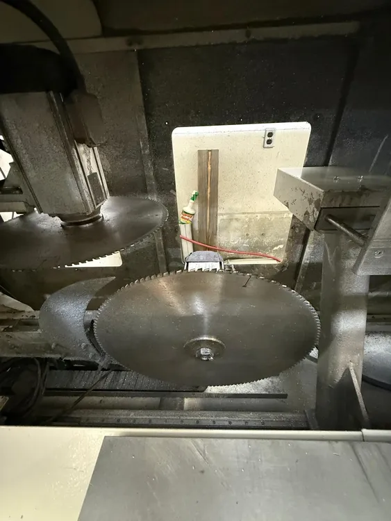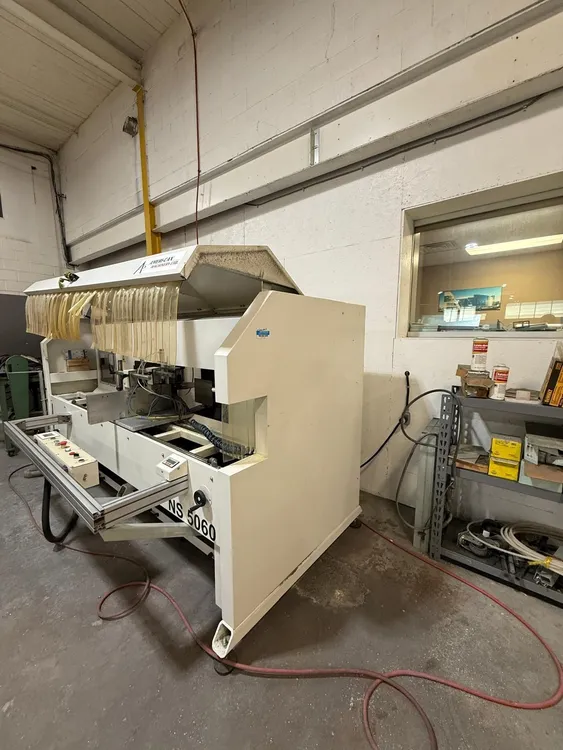 THE AMERI-CAN NS5060 IS A HEAVY-DUTY, TWO-BLADED NOTCHING SAW DESIGNED FOR INDUSTRIAL USE. THIS MACHINE OPERATES WITH A 9HP MOTOR AND REQUIRES A 220V, 60HZ, 3PH POWER SUPPLY. IT IS CONFIGURED AS A TWO-BLADE MACHINE, FEATURING A VERTICAL BLADE WITH A DIAMETER OF Ø 600 MM AND A HORIZONTAL BLADE WITH A DIAMETER OF Ø 5 INCHES. THIS TWO-BLADE NOTCHING SAW IS CAPABLE OF CREATING PRECISE NOTCHES FOR APPLICATIONS SUCH AS MANUFACTURING STUDS FOR WALLS WITH LINTEL BEAMS.