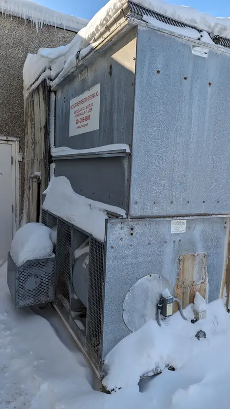 COMPLETE AMONIA 4 PALLET VACUUM CHAMBER, WITH CONTROL ROOM LOCATED ON GROUND FLOOR, SABROE RECIPROCATING COMPRESSOR, 2 X BUSCH VACUUM PUMPS, EVAPCO CONDENSOR
