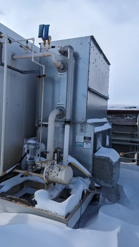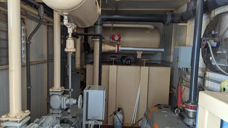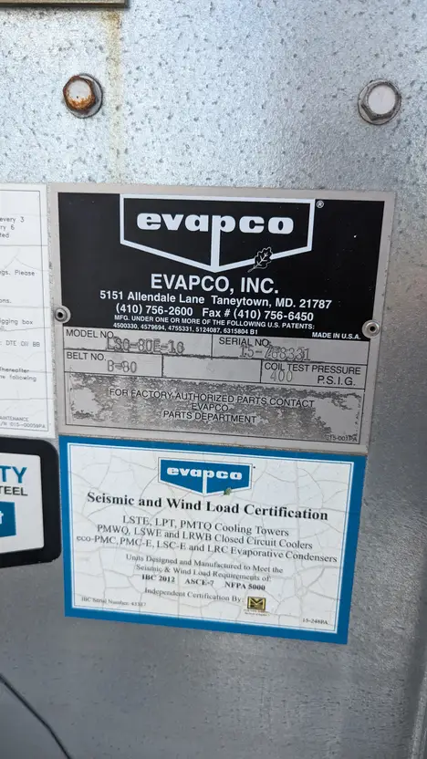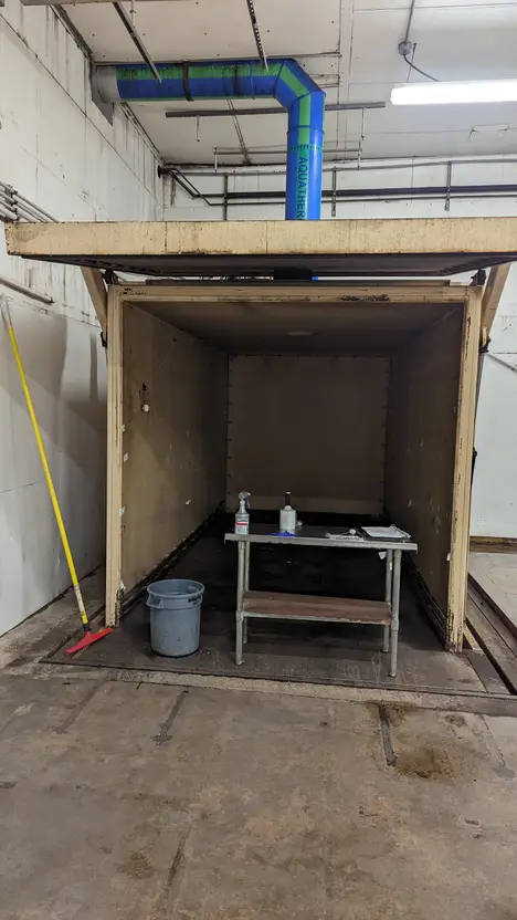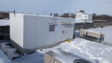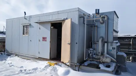 COMPLETE AMONIA 198" L X 92" W VACUUM CHAMBER, WITH CONTROL ROOM LOCATED ON ROOF, MYCOM RECIPROCATING COMPRESSOR, 3 X BUSCH VACUUM PUMPS, EVAPCO CONDENSOR