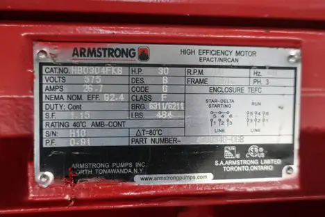 ARMSTRONG CENTRIFUGAL PUMP - MODEL HB0304FKR, 6IN, 964GPM, 95FT, 11.5IN, 30HP, 6IN, 575V-AC