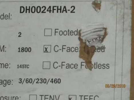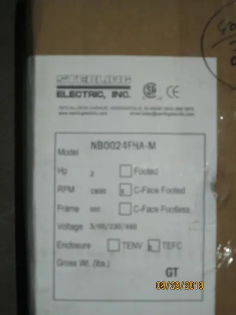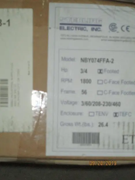 2EA) (RBY074FHA 3/4HP 18 56C TEFC W/ FOOT 208-230/460 STERLING)