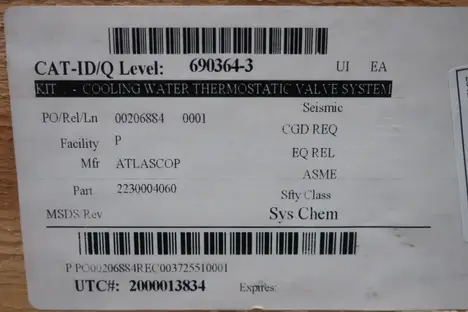 ATLAS COPCO WATER COOLING THERMOSTATIC VALVE SYSTEM KIT