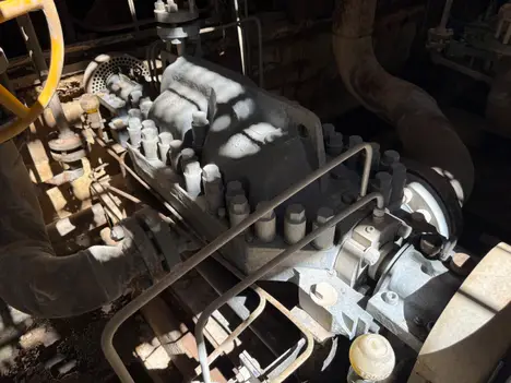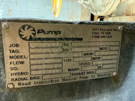 THE BINGHAM 3X6X9E MSD IS A HORIZONTALLY MOUNTED, AXIALLY SPLIT, MULTISTAGE CENTRIFUGAL PUMP ENGINEERED FOR HIGH-PRESSURE, CONTINUOUS-DUTY SERVICE IN CRITICAL INDUSTRIAL APPLICATIONS. ACCORDING TO THE NAMEPLATE, THIS UNIT IS RATED AT 400 GPM AT 1637 FT TOTAL DYNAMIC HEAD WHEN OPERATING AT 3550 RPM. THE PUMP IS CONFIGURED WITH A 3 IN DISCHARGE AND 6 IN SUCTION, WITH 9.88 IN IMPELLERS SIZED TO DELIVER HIGH HEAD PER STAGE WHILE MAINTAINING HYDRAULIC EFFICIENCY ACROSS THE DUTY RANGE. THE MSD ARCHITECTURE EMPLOYS OPPOSED IMPELLER STAGING WITHIN AN AXIALLY SPLIT CASING TO INHERENTLY BALANCE AXIAL THRUST, REDUCING BEARING LOADS AND EXTENDING SERVICE INTERVALS. MATERIALS OF CONSTRUCTION ARE DESIGNATED S‑6, SUITABLE FOR HYDROCARBON AND PROCESS WATER SERVICES, COMPLEMENTED BY A HYDROSTATIC TEST RATING OF 2200 PSI AND A MAXIMUM ALLOWABLE WORKING PRESSURE OF 1480 PSI AT 106°F, INDICATING ROBUST PRESSURE CAPABILITY AND CASING INTEGRITY. THE UNIT IS EQUIPPED WITH ELU RADIAL BEARINGS AND A T‑18 THRUST BEARING ARRANGEMENT TO HANDLE RESIDUAL AXIAL AND RADIAL FORCES AT THE SPECIFIED SPEED. WITH A NAMEPLATE SPECIFIC GRAVITY OF 0.92, THE HYDRAULIC PERFORMANCE IS ALIGNED TO LIGHT HYDROCARBON OR SIMILAR FLUIDS, THOUGH THE DESIGN IS ADAPTABLE TO OTHER MEDIA WITHIN THE MSD SERIES ENVELOPE. TYPICAL SERVICES INCLUDE PIPELINE BOOSTING, BOILER FEED, WATER INJECTION, AND HIGH-PRESSURE TRANSFER IN REFINING, PETROCHEMICAL, AND POWER MARKETS. THE AXIALLY SPLIT CASE ALLOWS RAPID MAINTENANCE ACCESS TO ROTATING ELEMENTS WITHOUT DISTURBING FLANGES OR PIPING, MINIMIZING MEAN TIME TO REPAIR AND SUPPORTING HIGH RELIABILITY IN CONTINUOUS OPERATIONS.