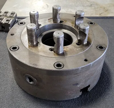 THIS IS A BISON 10" 3 JAW LATHE CHUCK FEATURING A D1-6 MOUNT.