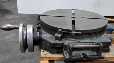 THIS IS A BRIDGEPORT 15" ROTARY TABLE. THIS ROTARY TABLE FEATURES A 15-INCH DIAMETER AND A 1-INCH BORE. IT IS EQUIPPED WITH 4 T-SLOTS. THE ITEM IS MANUFACTURED BY BRIDGEPORT.