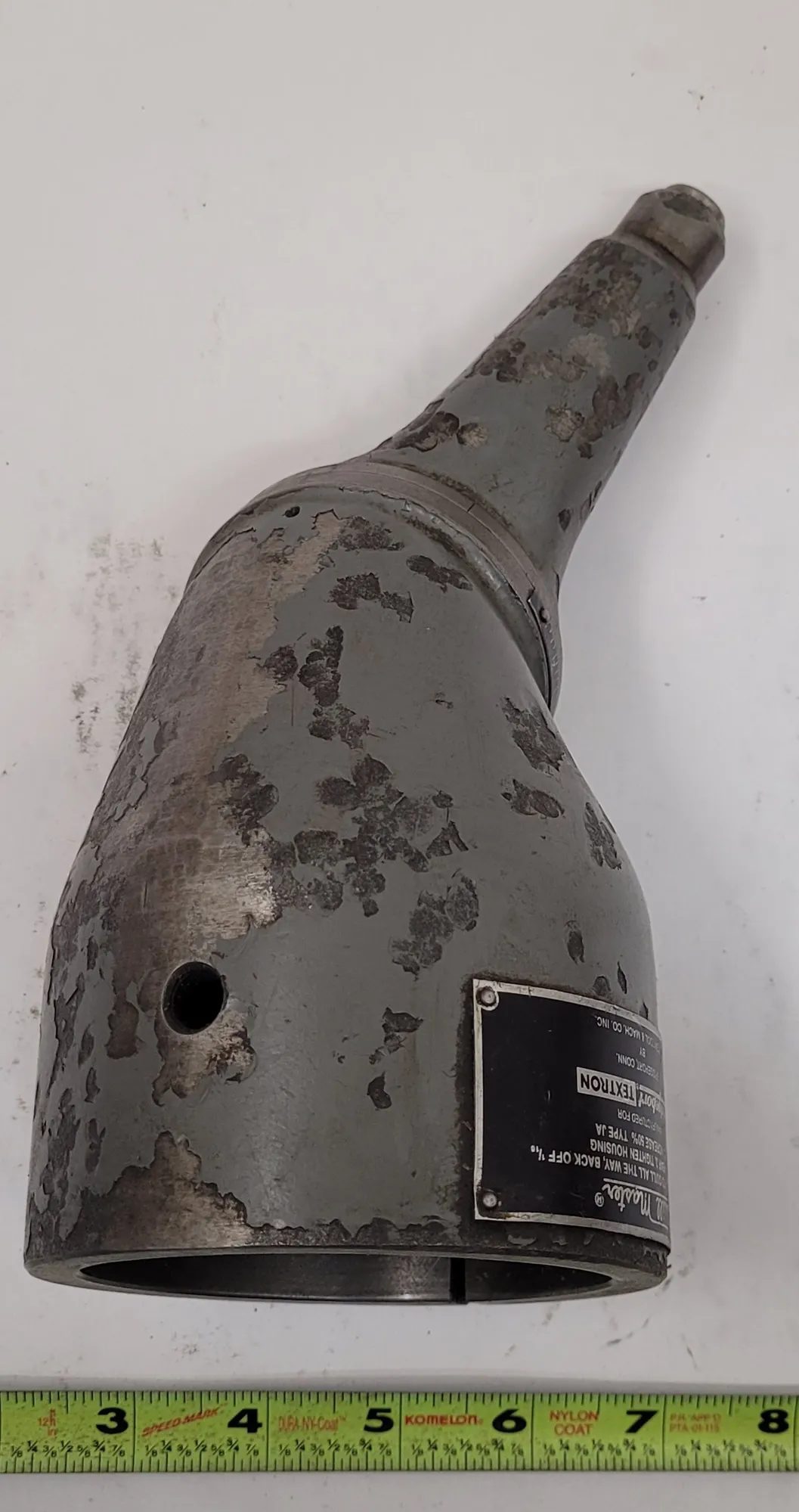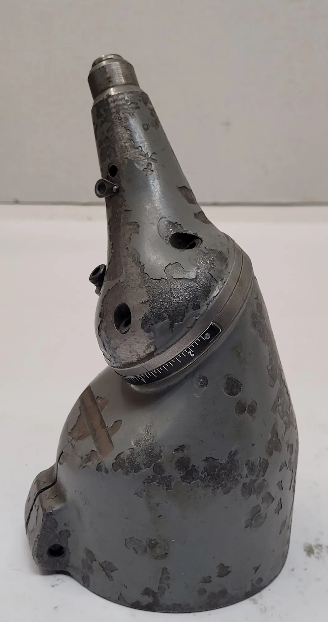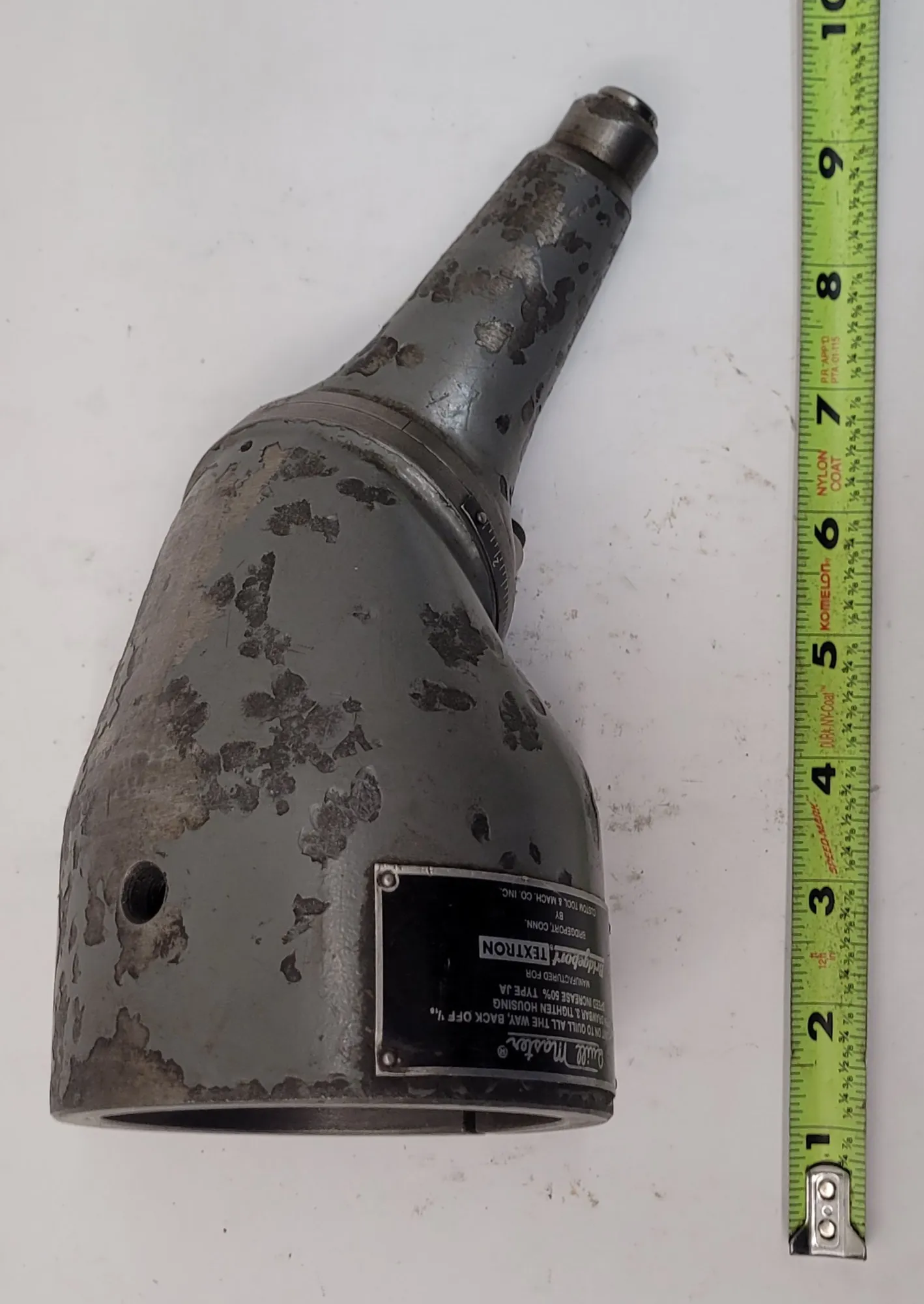 THE BRIDGEPORT TYPE JA QUILL MASTER IS A SPECIALIZED MILLING ATTACHMENT DESIGNED FOR SMALL MILLING, DRILLING, AND BORING OPERATIONS IN CONFINED AREAS OR AT VARIOUS ANGLES. THIS TOOL MOUNTS BY CLAMPING DIRECTLY ONTO THE QUILL OF A MILLING HEAD. IT FEATURES A 1/2 INCH DIAMETER DRIVE SHAFT, TYPICALLY DRIVEN BY AN R8 COLLET WITHIN THE SPINDLE. THE UNIT IS COMPATIBLE WITH COLLETS HAVING A 3/16 INCH DIAMETER CAPACITY.