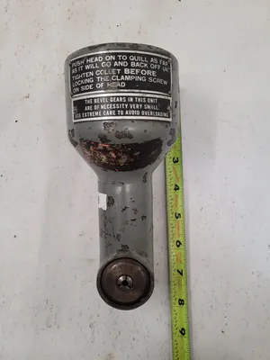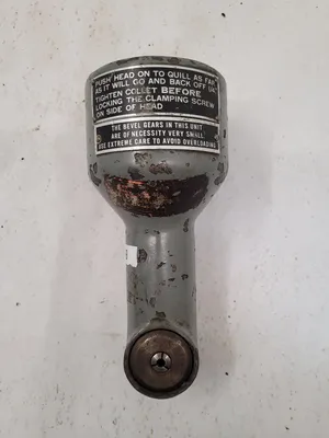 THIS IS A BRIDGEPORT RIGHT ANGLE HEAD ATTACHMENT. THE UNIT FEATURES A 3/8" SHANK AND IS EQUIPPED WITH A 2.5" ID HOLE. THE HEAD DIMENSIONS ARE 1.75" X 2", WITH A TOTAL LENGTH OF 8".