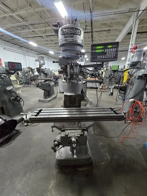 THIS IS A BRIDGEPORT SERIES 1 VERTICAL KNEE MILL FEATURING A 1HP STEP PULLY HEAD AND A 2-AXIS DRO. IT INCLUDES A 9" X 42" HAND-FEED TABLE WITH 30" LONGITUDINAL AND 12" CROSS TRAVEL. THE MACHINE IS EQUIPPED WITH AN R8 TAPER AND OFFERS 8 SPINDLE SPEEDS RANGING FROM 80 TO 2720 RPM.