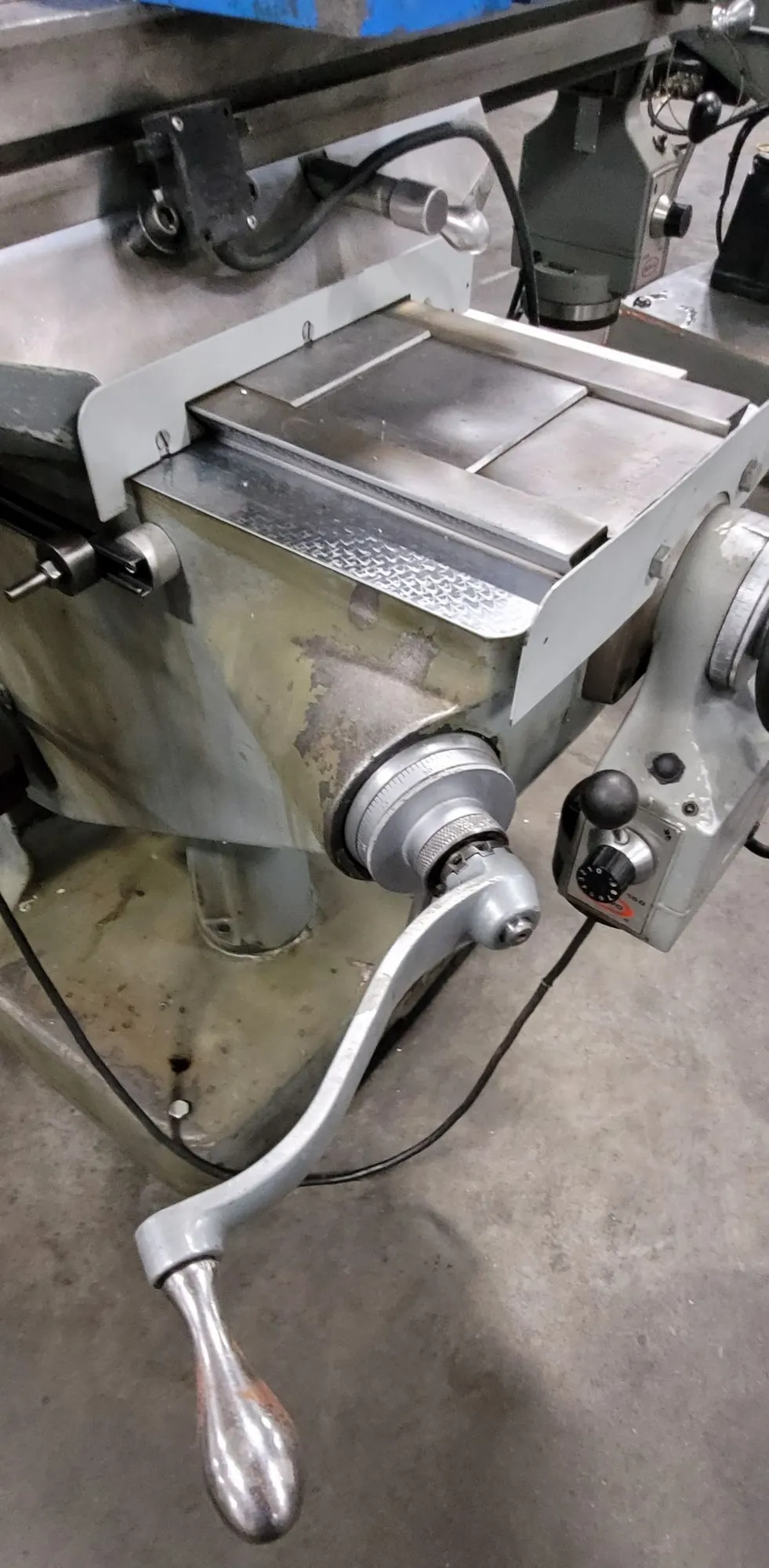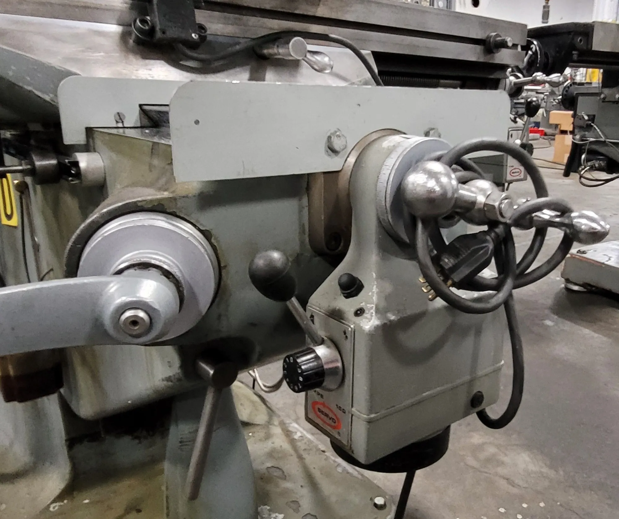 THE BRIDGEPORT SERIES 1 VERTICAL MILL FEATURES A 9 INCH BY 42 INCH TABLE AND IS POWERED BY A 3 HP WATT SAVER MOTOR. THIS MACHINE UTILIZES A HIGH-QUALITY VARIABLE FREQUENCY DRIVE (VFD) AND AN R8 SPINDLE TAPER, CAPABLE OF REACHING SPEEDS UP TO 5,000 RPM. IT IS EQUIPPED WITH AN ACU-RITE DIGITAL READOUT (DRO) AND SERVO BRAND POWER FEED FOR BOTH THE X AND Y AXES. ADDITIONAL FEATURES INCLUDE A SPEEDY POWER DRAWBAR, A KURT 6 INCH VICE, CHROME WAYS, AND A BIJUR ONE-SHOT LUBRICATION SYSTEM. THE UNIT HAS PHYSICAL DIMENSIONS OF 6 FEET BY 5 FEET BY 7 FEET AND WEIGHS APPROXIMATELY 2,300 LBS.