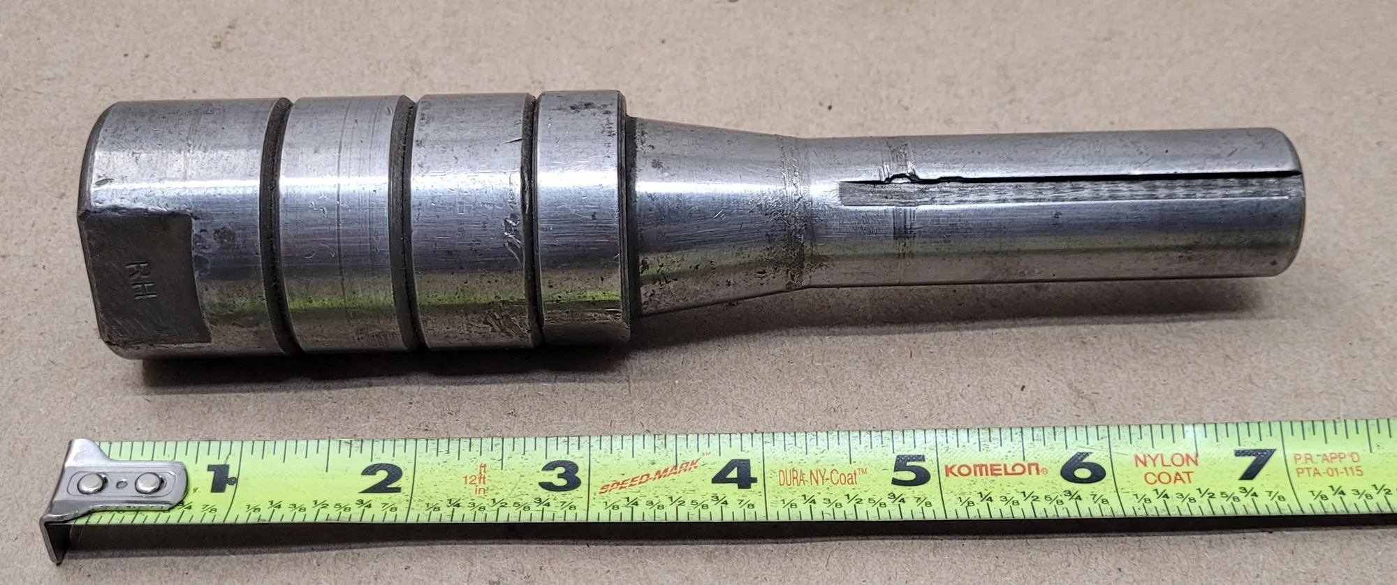 THIS BRIDGEPORT SLITTING SAW ARBOR IS DESIGNED WITH AN R8 SHANK TYPE FOR COMPATIBLE MACHINE SPINDLES. THE TOOL FEATURES AN OVERALL LENGTH OF 7-1/4 INCHES. THE ARBOR BODY HAS A THREADED DIAMETER OF 1 INCH AND INCLUDES A 1.60-INCH SCREW-ON NUT FOR SECURING THE SAW BLADE.