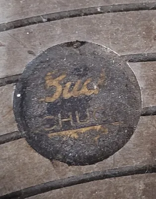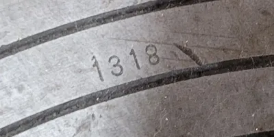 THIS IS A BUCK FOUR-JAW LATHE CHUCK WITH AN 18-INCH OVERALL DIAMETER. THE UNIT IS IDENTIFIABLE BY THE STAMPED MARKING "1318" AND IS MANUFACTURED BY BUCK. IT IS A FOUR-JAW CONFIGURATION DESIGNED FOR PRECISION WORK ON A LATHE.