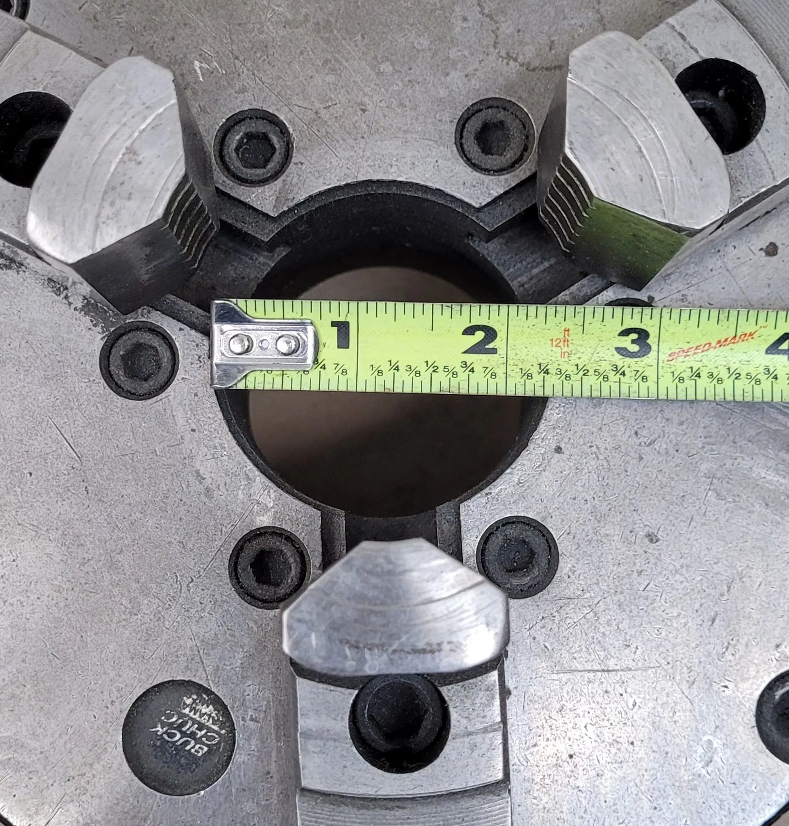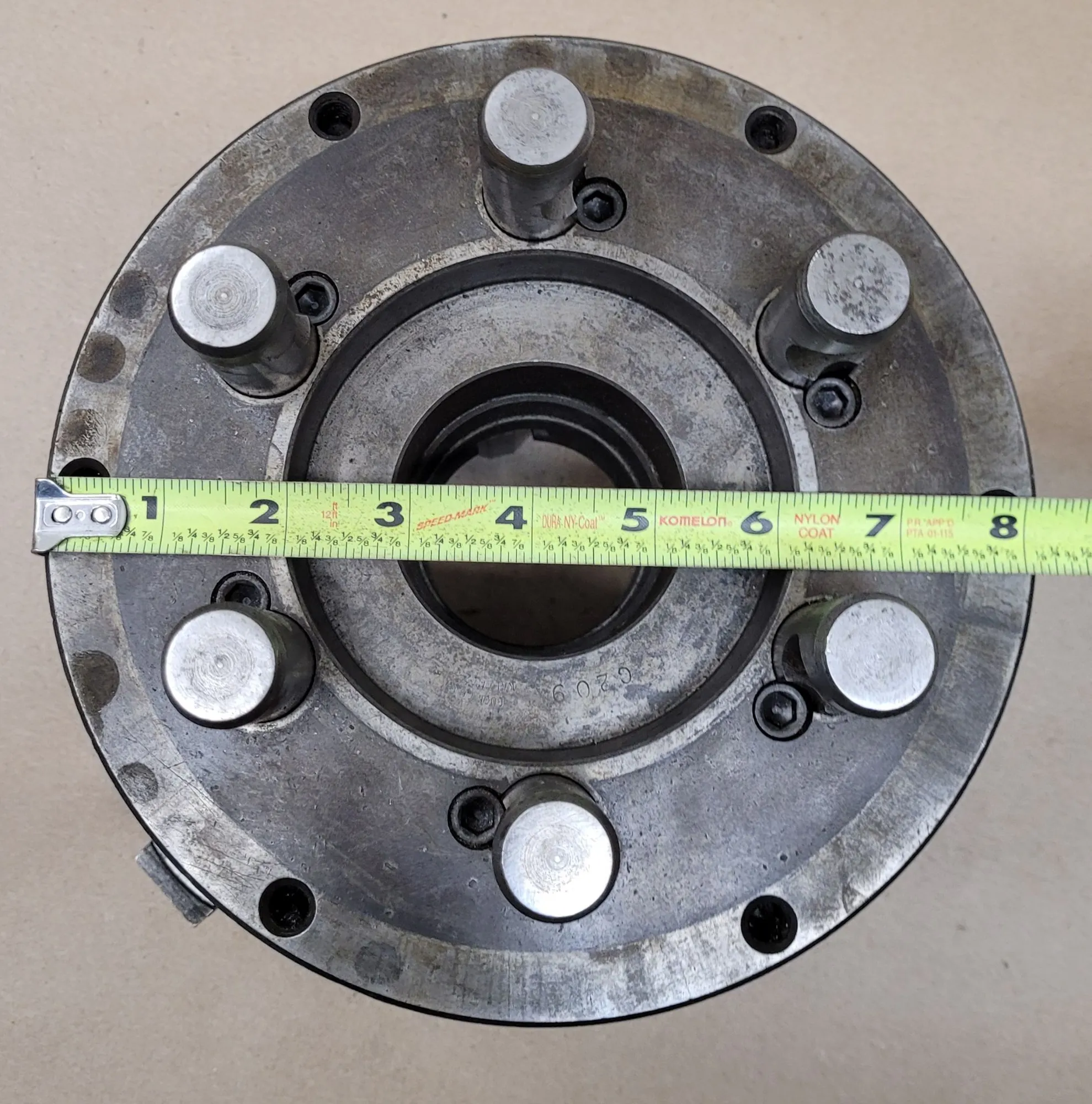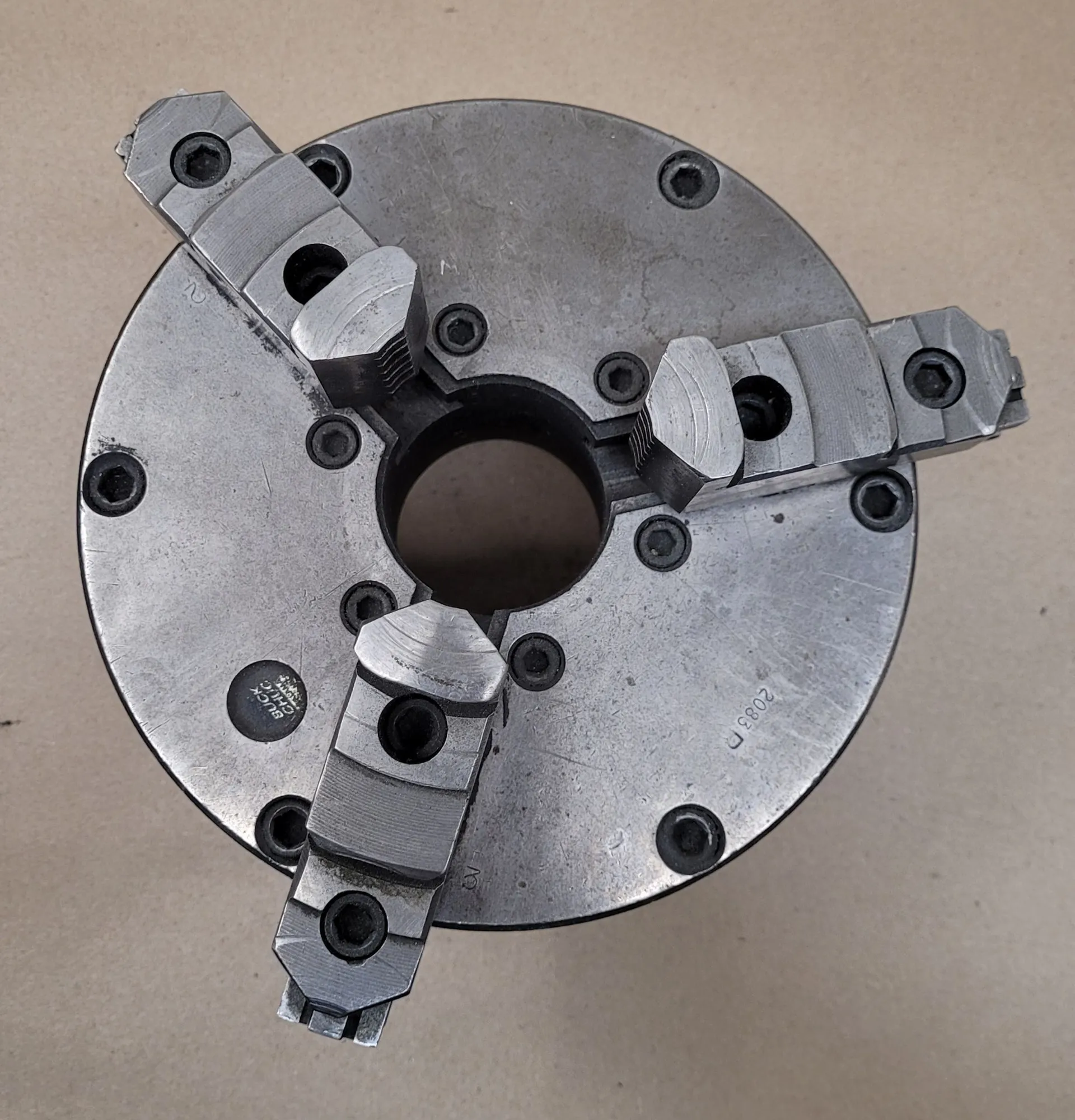 BUCK 2083R LATHE CHUCK, 8" 3-JAW, D1-6 BACK PLATE, 2.25" BORE, 6 PINS, INCLUDES CHUCK KEY