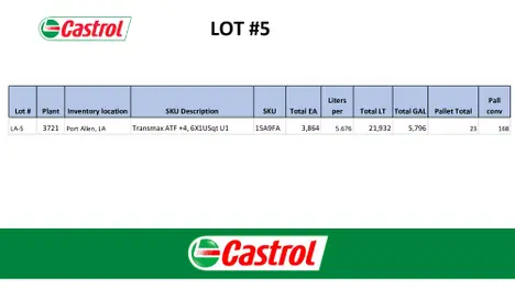 Surplus Castrol Motor Oil from the Ongoing Operations of BP Oil